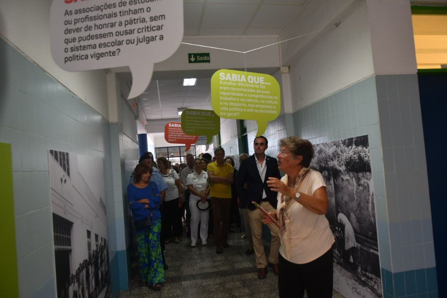 Inserida nas comemorações dos 50 anos do 25 de Abril, a mostra ocupa três espaços distintos da escola com painéis de memórias históricas, culturais, desportivas, económicas e sociais.
