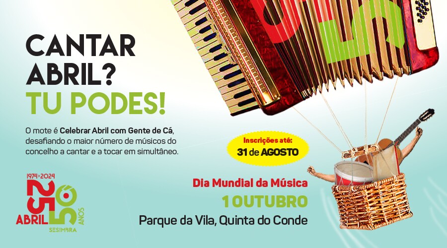 Se cantar ou tocar é a sua paixão, então este convite é para si. No Dia Mundial da Música, 1 de outubro, o Parque da Vila vai transformar-se num grande palco e servir de cenário à apresentação Cantar Abril? Tu Podes!