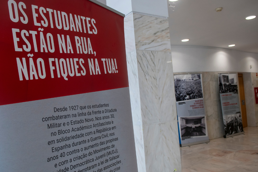 Exposição Os Estudantes Estão na Rua patente na Biblioteca de Sesimbra