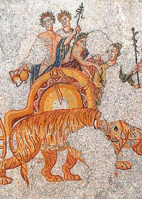 Baco, deus do vinho, homólogo da divindade de origem grega, Dioniso, cujo culto parece ter penetrado em Roma no século IV a.C. foi também considerado pelos romanos como um amante da paz e promotor da civilização. De acordo com a mitologia, atribui-se a Baco a forma de extrair o sumo da uva e produzir o vinho. Podemos dizer que Dioniso ou Baco, filho de Zeus e da princesa Sémele, era o deus grego das festas, do vinho, da fecundidade, do lazer e do prazer, símbolo do desejo e da libertação de qualquer inibição. O Deus Baco é normalmente representado na companhia de Sileno, seu tutor, de Sátiros, divindades da natureza meio humanos-meio animais, e das Bacantes/Ménades personagens míticas ligadas ao culto de Dioniso/Baco.