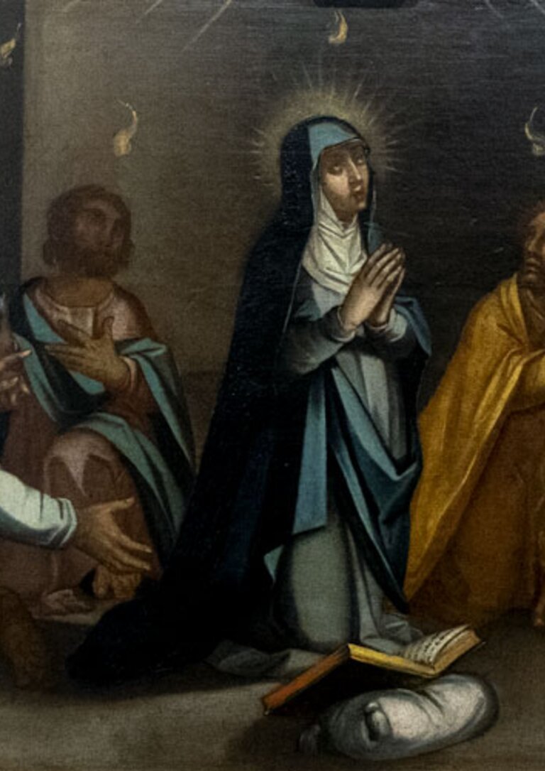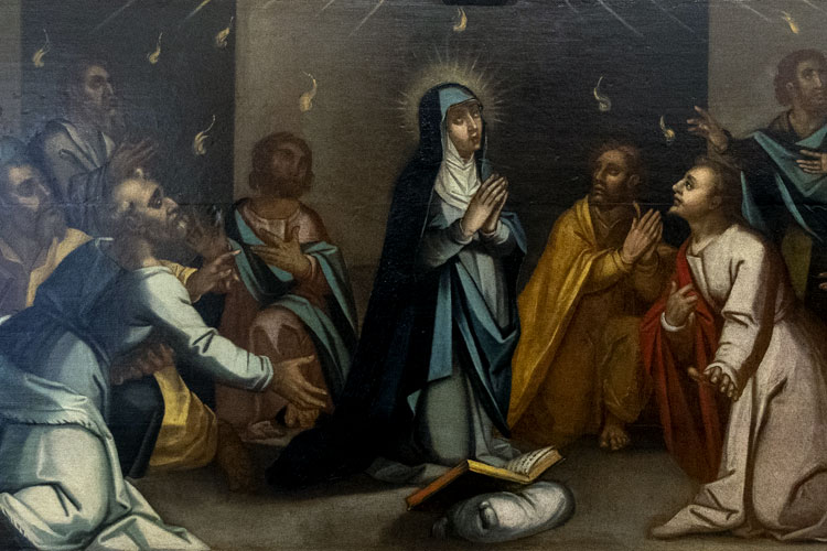 Dia 11 de junho é o Dia do Corpo de Deus, que se comemora 60 dias depois da Páscoa, mas 50 dias depois da Páscoa, comemora-se o dia do Pentecostes, que assinala a data da descida do Espirito Santo aos Apóstolo e Maria. Nesta atividade vamos relacionar duas obras magníficas que pertenceram à Capela do Espírito Santo, quando nesse local se praticava o culto religioso, e que faziam parte do altarmor. Hoje sendo um núcleo museológico, estes dois quadros estão inseridos na exposição atual.