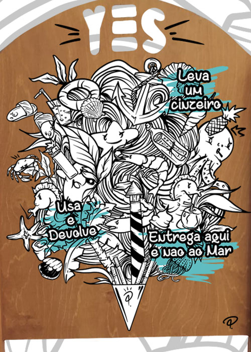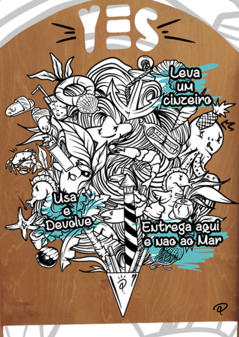 O objetivo principal da ilustração pretende alertar para a reutilização dos cinzeiros de praia, de forma a que as beatas não vão parar ao mar, e está composta por elementos divertidos e caraterísticos da época balnear em Sesimbra.