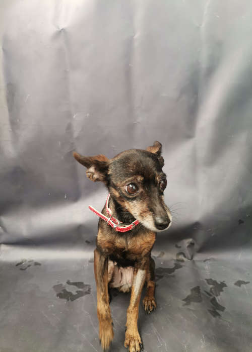 Sénior curiosa, dócil e brincalhona.