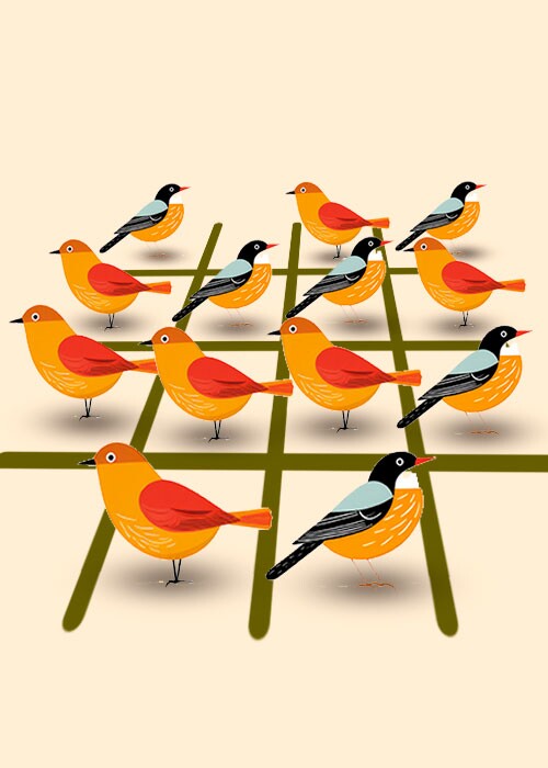 4 aves em linha