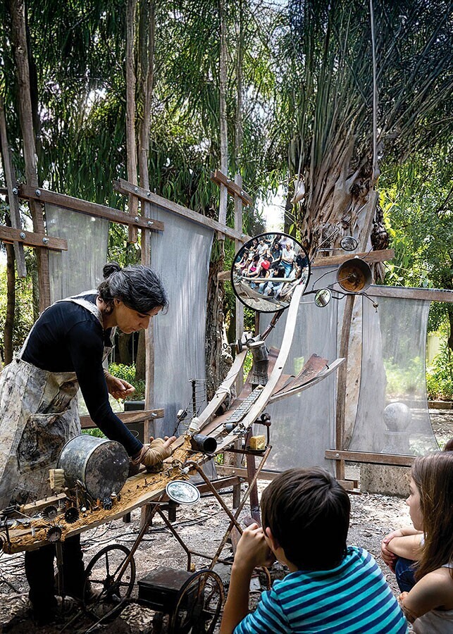 Tão bela e tão bruta, corpo de carne, um pinóquio já quase humano. Tão segura de si e do seu Eu que não se olha na sua fragilidade. O que acontece se perde a forma? Perde também a razão de ser? E onde se move e se descobre esta persona? No mesmo espaço onde nasceu. No caos da oficina onde caminhou e se encontrou, a tropeçar entre mil e um objectos de antigas respigas, amontoados e acoplados, indiferenciados entre ferramentas e pedaços de barro.