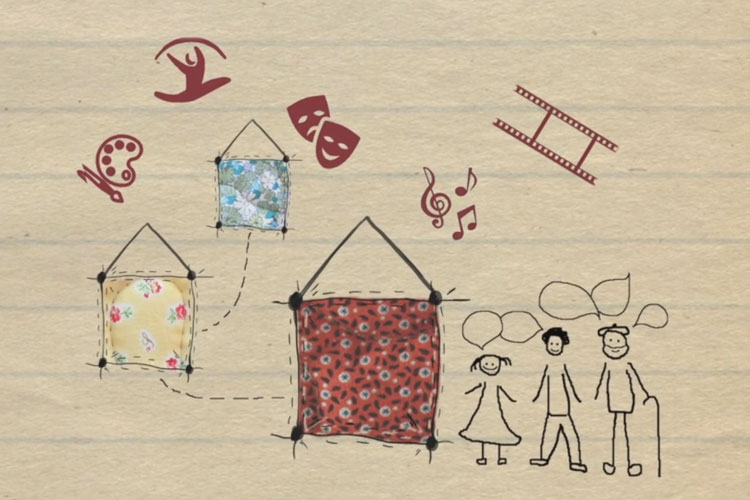 O projeto comunitário Manta de Retalhos - Olhar, Criar, Entrelaçar - Sesimbra é destinado a organizações sociais e educativas locais e culmina com um espetáculo dirigido à comunidade. Durante uma semana, os participantes vão trabalhar os vários processos artísticos envolvendo música, teatro, movimento, artes visuais e elementos do património cultural e tradicional de Sesimbra, como canções, histórias e testemunhos pessoais. Paralelamente, decorre uma ação de formação para os técnicos das organizações sobre o trabalho de criação artística com grupos heterogéneos inspirado no património local e pessoal dos participantes.