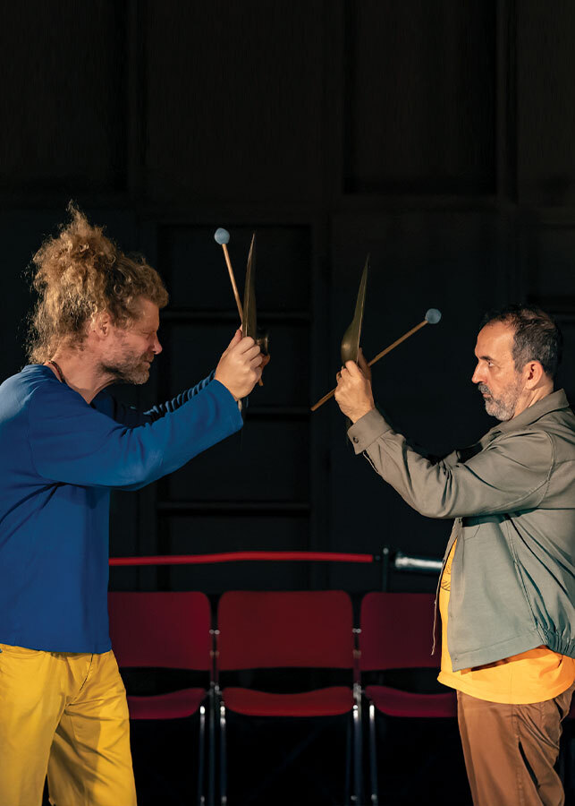 Dois músicos-performers estão no meio do público, abolindo o dentro-fora, o palco-plateia. Toda a gente a partilhar a mesma toca, protegendo-se e cuidando uns dos outros. Lá fora pode chover ou fazer frio, mas aqui estamos quentinhos e a fazer por estar bem. Temos direito, não é?