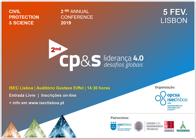 O Observatório de Proteção Civil & Safety, do Instituto Superior de Educação e Ciências de Lisboa organiza no dia 5 de fevereiro, terça-feira, às 14.30 horas, nas suas instalações, a 2.ª Conferência Anual de Proteção Civil e Ciência – Liderança 4.0 Desafios Globais.
