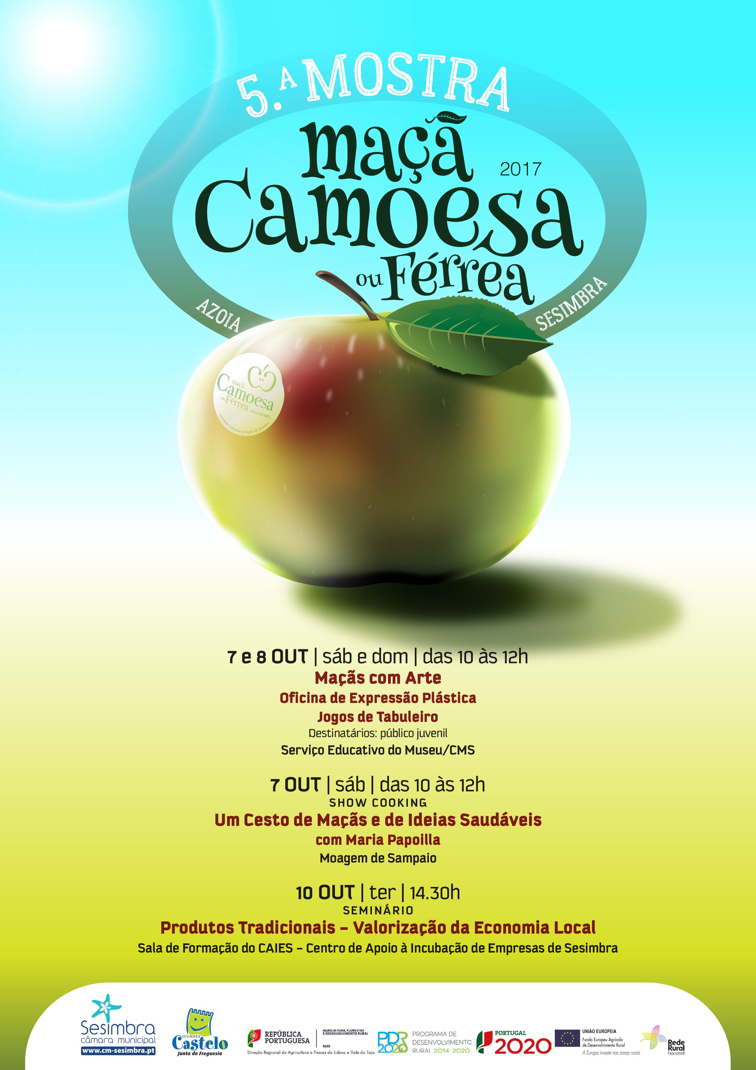 A 5.ª Mostra de Maçã Camoesa ou Férrea Azoia – Variedade Tradicional da Região de Sesimbra decorre nos dias 7 e 8 de outubro, sábado e domingo, das 9 às 13 horas, na Moagem de Sampaio.
