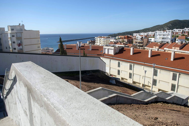 A escadaria entre as ruas da Juventude e Jose Pinto Brás, na vila de Sesimbra, está praticamente concluída. De momento falta apenas terminar a colocação dos corrimãos ao longo deste acesso, que vai facilitar a ligação pedonal entre as zonas alta e baixa da vila.