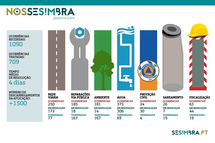 A aplicação Nós Sesimbra é gratuita e está disponível para telemóvel nas lojas online App Store (Apple) e Google Play (Android). Pode também ser utilizada no site da Câmara Municipal ou na página de Facebook da autarquia (ligação na barra esquerda). Depois de reportada a ocorrência, é possível acompanhar a evolução do processo via SMS ou e-mail, ou pela consulta no mapa de ocorrências.