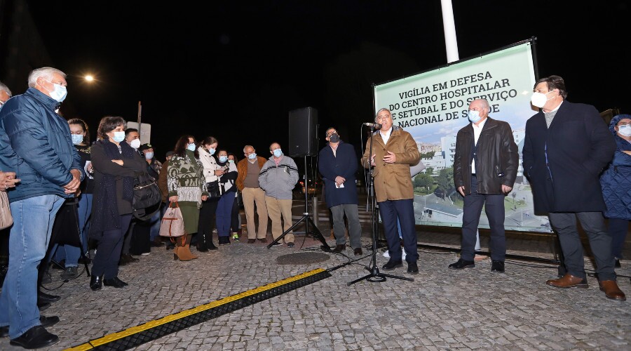 Cerca de uma centena de pessoas, entre as quais os presidentes de Câmara de Palmela, Sesimbra e Setúbal, comissões de utentes, bombeiros e profissionais de saúde juntaram-se ontem, 18 de janeiro, em frente ao Hospital São Bernardo, em Setúbal, para participar numa vigília por melhores condições de saúde na região.