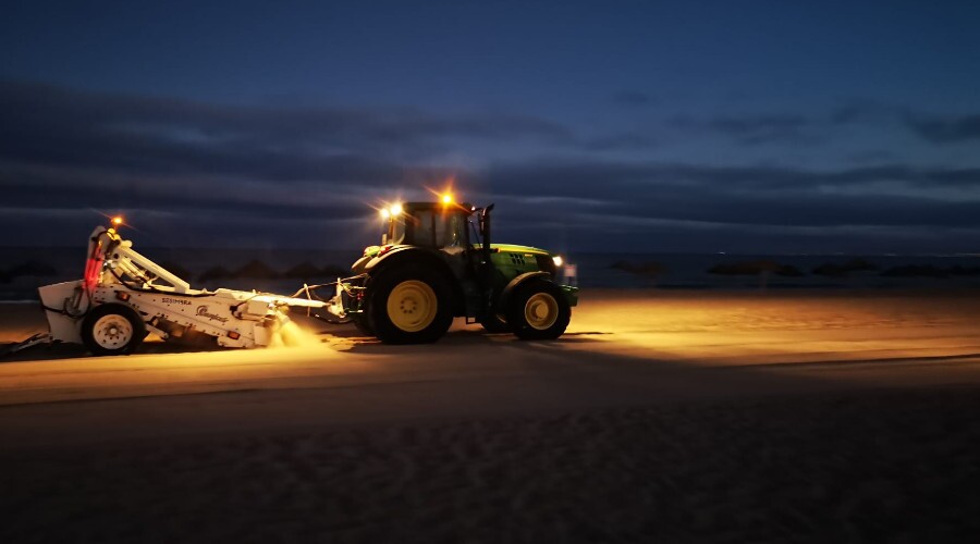 Na época balnear este trabalho decorre pela madrugada, com a limpeza mecânica assegurada por uma máquina que recolhe os resíduos com o auxílio de uma grelha de retenção, e é reforçado por equipas que recolhem manualmente o lixo em locais onde a máquina não consegue chegar, bem como os sacos para deposição de lixo, distribuídos ao longo dos areais.