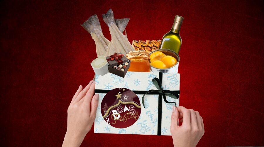 Além de bacalhau, o cabaz inclui azeite, óleo, ovos, queijo, açúcar, farinha, cevada, broas, doce de abóbora, pêssego em calda e bombons.