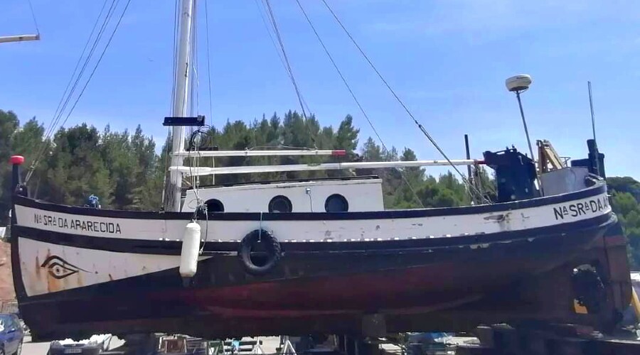 A barca Nossa Senhora da Aparecida, que ficou mais conhecida em 2005, devido à travessia do Oceano Atlântico, entre Sesimbra e Porto Seguro, no Brasil, está em doca seca, no Porto de Sesimbra, para ser reabilitada.
