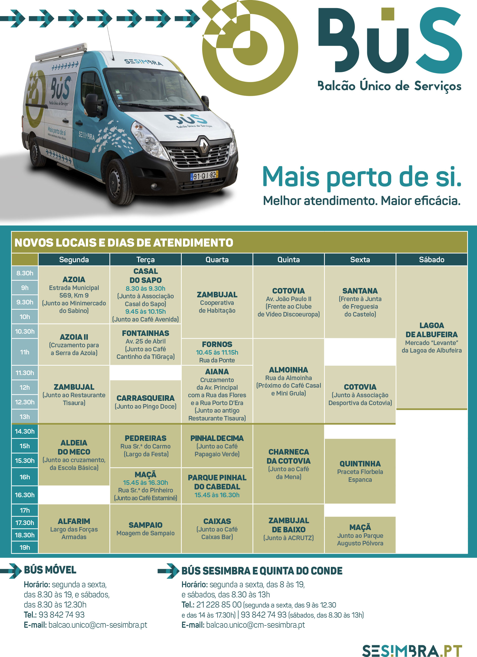 Fontainhas, na Quinta do Conde, Carrasqueira, Parque Augusto Pólvora e Pinhal de Cima, na freguesia do Castelo, são alguns dos novos locais de atendimento.