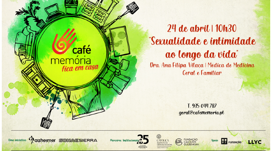 A próxima sessão de O Café Memória fica em casa realiza-se no dia 24 de abril, sábado, das 10.30 às 12 horas, e é subordinada ao tema Sexualidade e intimidade ao longo da vida, e tem como convidada a dra. Ana Filipa Vilaça, Médica de Medicina Geral e Familiar.