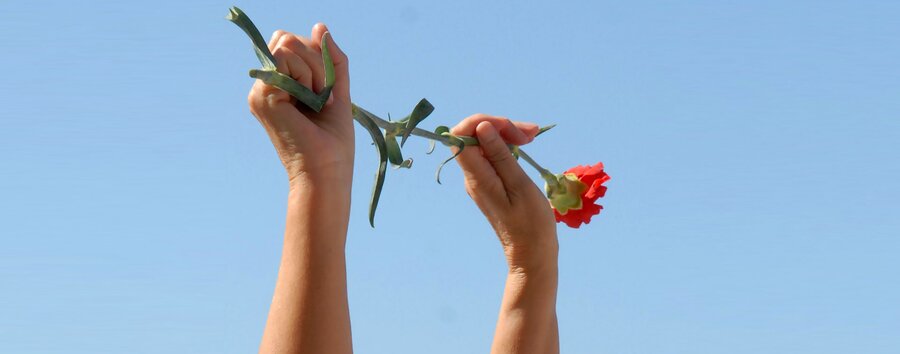 Colocação de coroa de cravos vermelhos