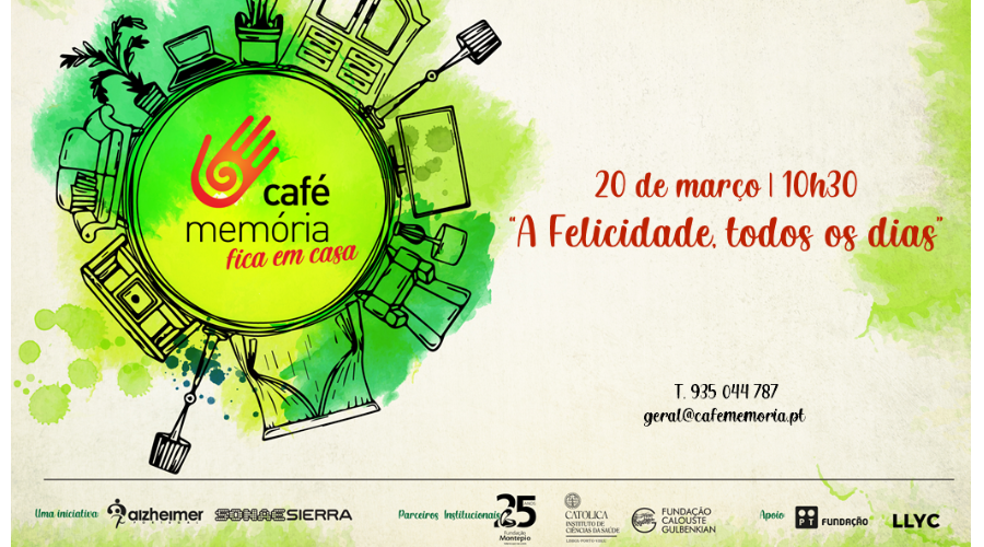 A próxima sessão de O Café Memória fica em casa realiza-se no dia 20 de março, sábado, das 10.30 às 12 horas. Neste sábado assinala-se o Dia Internacional da Felicidade, pelo que esta sessão irá abordar diferentes caminhos para se viver feliz todos os dias. Os participantes vão também partilhar histórias que enchem o coração.