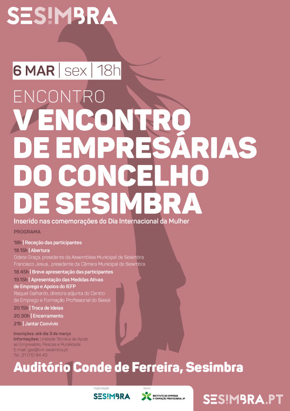 Sesimbra assinala o Dia Internacional da Mulher com o Encontro de Empresárias do Concelho, no dia 6, sexta-feira, a partir das 18 horas, no Auditório Conde de Ferreira, na vila de Sesimbra.