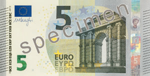 A marca de água e o holograma incluem um retrato da figura mitológica grega Europa, que dá nome à segunda série de notas de euro.