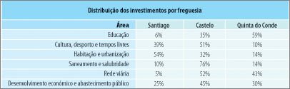 Quanto à distribuição por freguesias, o maior investimento vai ser efectuado no Castelo, seguindo-se a Quinta do Conde e Santiago.