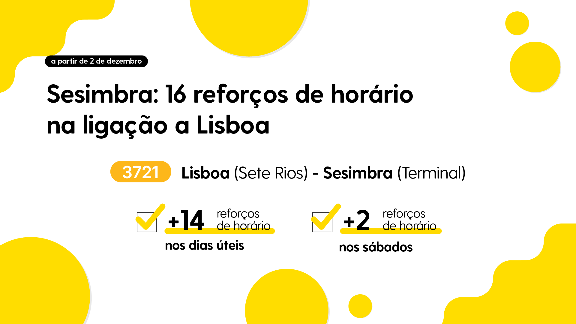 Face ao crescimento contínuo da procura, a partir de 2 de dezembro serão implementados mais 14 reforços de horário nos dias úteis e dois nos sábados, o que corresponde a um aumento global de aproximadamente 53% no número de partidas entre 2023 e 2025 e de 24% entre outubro e dezembro de 2025.