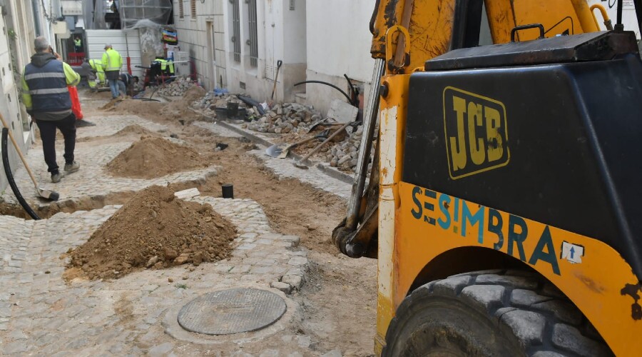 Na Rua Leão de Oliveira, na vila de Sesimbra, os serviços municipais estão a proceder à substituição da conduta e dos ramais domiciliários da rede de água. Os trabalhos devem estar concluídos na próxima semana.
