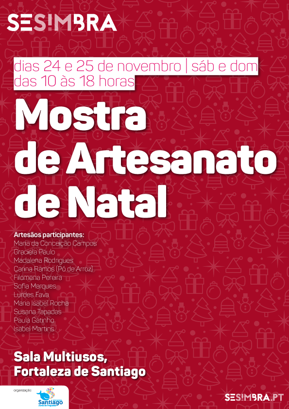 A Junta de Freguesia de Santiago promove uma Mostra de Artesanato de Natal, nos dias 24 e 25 de novembro, sábado e domingo, das 10 às 18 horas, no Espaço Multiusos, na Fortaleza de Santiago.
