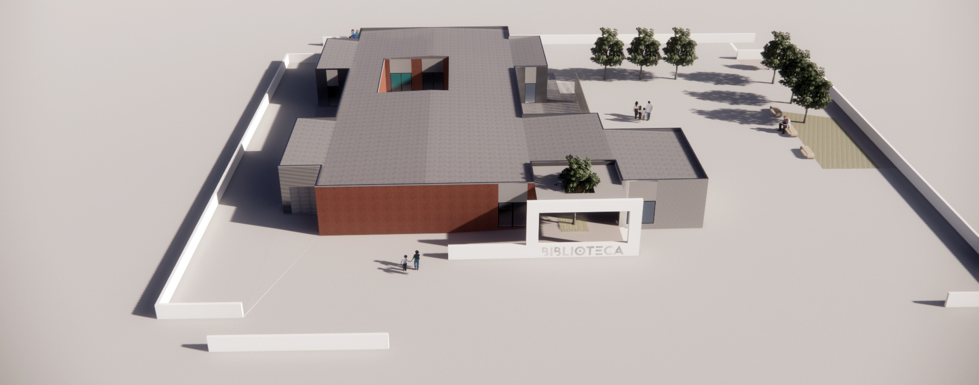 O edifício é composto por uma zona exterior ajardinada, com bancos que convidam à leitura no local, átrio preparado para pequenos eventos, como exposições, reuniões, apresentações, formações ou colóquios, sala de leitura, área de consulta de periódicos equipada com novas tecnologias e espaço infantil com condições para a realização de atividades para os mais pequenos e acesso a um jardim interior.