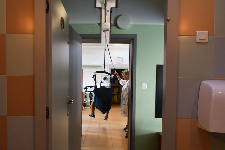 Trata-se de um equipamento de apoio à mobilidade, semelhante ao que recebeu a Escola Básica de Sesimbra no início do ano letivo 2018/2019, que permite a deslocação dos alunos pelos vários espaços da sala e sanitários, através de um dispositivo de transferência que pode ser utilizado, igualmente, para treino de marcha.