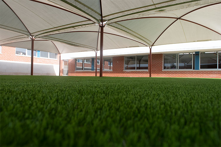 Num pátio interior da Escola Básica de Sampaio, com uma área de 300 metros quadrados, foi aplicado um novo piso em relva sintética. Esta