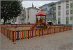 A zona reservada aos mais pequenos está protegida com uma vedação e tem uma superfície de impacte em areão, que permitirá às crianças brincarem em maior segurança.