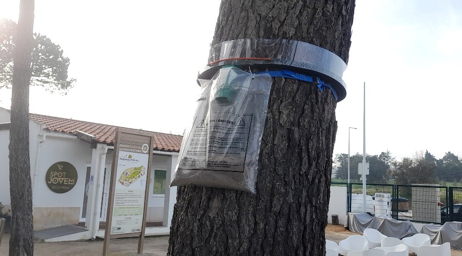 Para minimizar este problema, nos casos em que o tratamento com as microinjeções não é totalmente eficaz, a autarquia adotou, a título experimental em zonas de risco, a instalação de armadilhas para evitar que as lagartas consigam descer dos pinheiros.