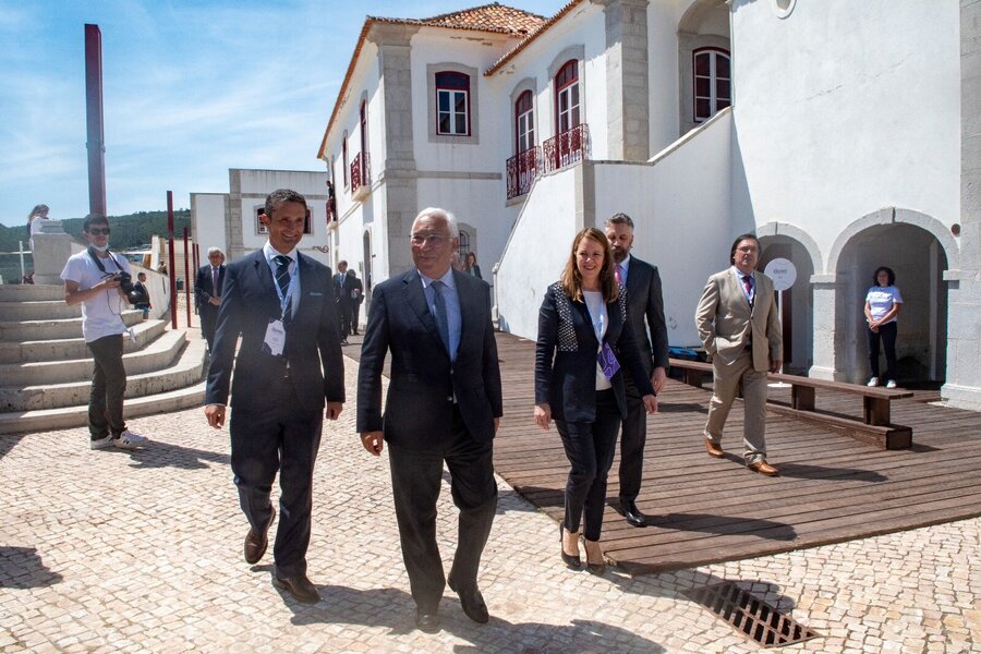 O primeiro-ministro António Costa, o ministro das Infraestruturas e Planeamento, Pedro Nuno Santos, e o ministro da Economia e do Mar, António Costa Silva, estiveram hoje na Fortaleza de Santiago, em Sesimbra, para participar na cerimónia que assinalou a chegada do Cabo Equiano da Google à Europa, a partir de África,.