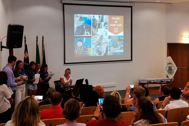A apresentação do projeto Sesimbra a Bordo por parte de três alunas e uma professora do Agrupamento de Escolas Navegador Rodrigues Soromenho foi um dos pontos altos do primeiro dia da conferência European Marine Science Educators Association – EMSEA, que decorre de 16 a 20 de setembro, em São Miguel, nos Açores.