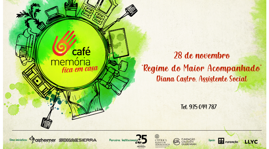 A próxima sessão de O Café Memória fica em casa, que se realiza no dia 28 de novembro, sábado, das 11 às 12 horas. Esta sessão é subordinada ao tema Regime do maior acompanhado, e tem como convidada Diana Castro, Assistente Social.