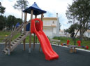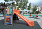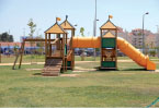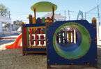 Equipamentos: Duas molas, baloiço, estrutura multifunções com torre, escorrega, telhado folha, rampa de escalada com corda, rede de marinheiro, escada de suspensão, jogo do galo e estação de vitalidade e fitness. Espaço vedado.