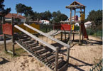 Equipamentos: Rede tridimensional, estrutura multifunções com torres, pontes de cordas, túnel, rampa para escalar, baloiço, escorrega, baloiço tipo cesta, túnel de madeira, comboio e casinha em madeira e molas (bambi e cavalinho).