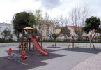 Equipamentos: Estrutura multifunções com baloiço, torre, escada de acesso e escorrega. Tem bebedouro e três bancos. Espaço vedado.