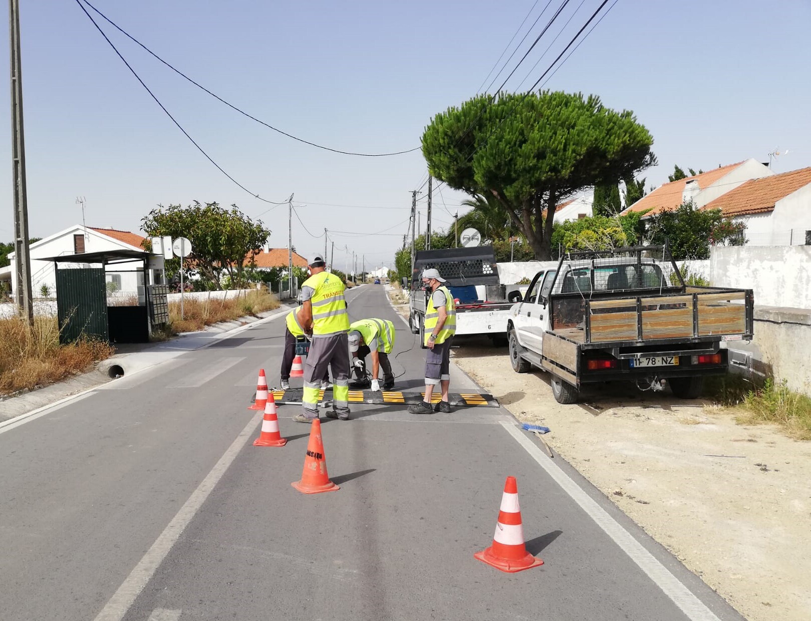Para reduzir a velocidade na Estrada Municipal 569, na Azoia, e contribuir para a segurança dos peões, a Câmara Municipal instalou provisoriamente lombas em borracha nas passadeiras junto às paragens de transportes públicos.