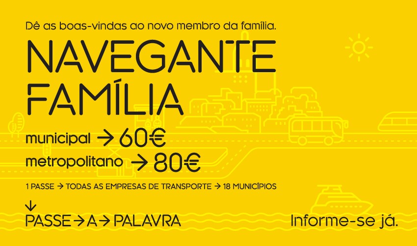 Este título de transporte reforça a enorme redução tarifária iniciada em abril de 2019, passando a permitir que cada família, com três ou mais elementos, e com a morada fiscal num dos 18 municípios da Área Metropolitana de Lisboa, onde se inclui Sesimbra, pague no máximo, o valor equivalente a dois passes Navegante (60 euros no caso do Navegante Municipal, ou 80 euros no caso do Navegante Metropolitano).