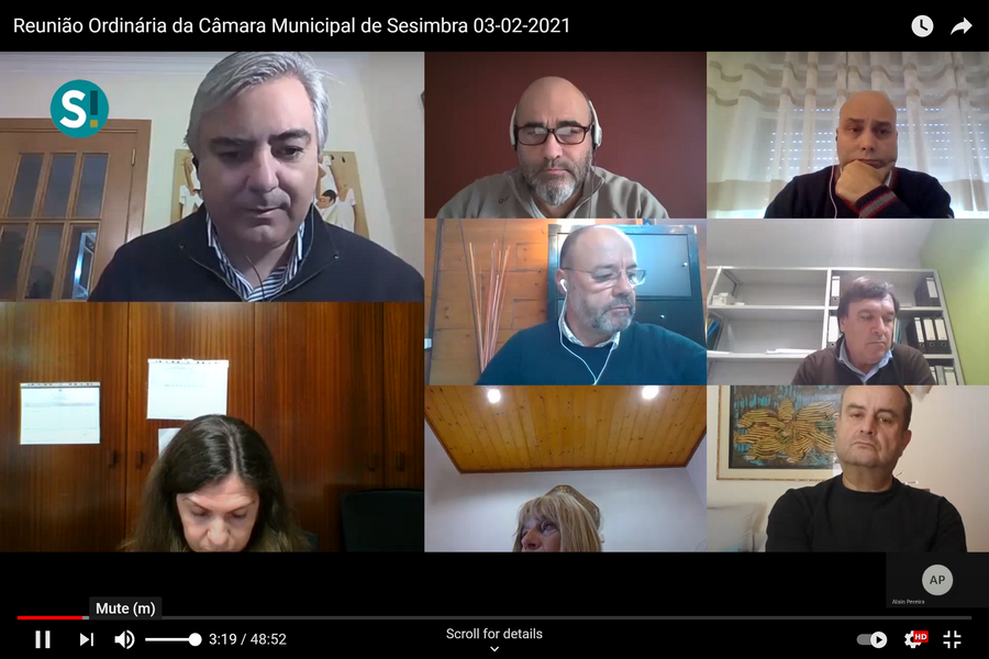 Devido ao agravamento da pandemia, as reuniões de câmara passaram a ser feitas por videoconferência, sem transmissão em direto. O vídeo na íntegra é disponibilizado logo após o seu término no canal Youtube do município e nas redes sociais da autarquia. A participação neste modelo é possível através do envio de um e-mail para o endereço presidencia@cm-sesimbra.pt