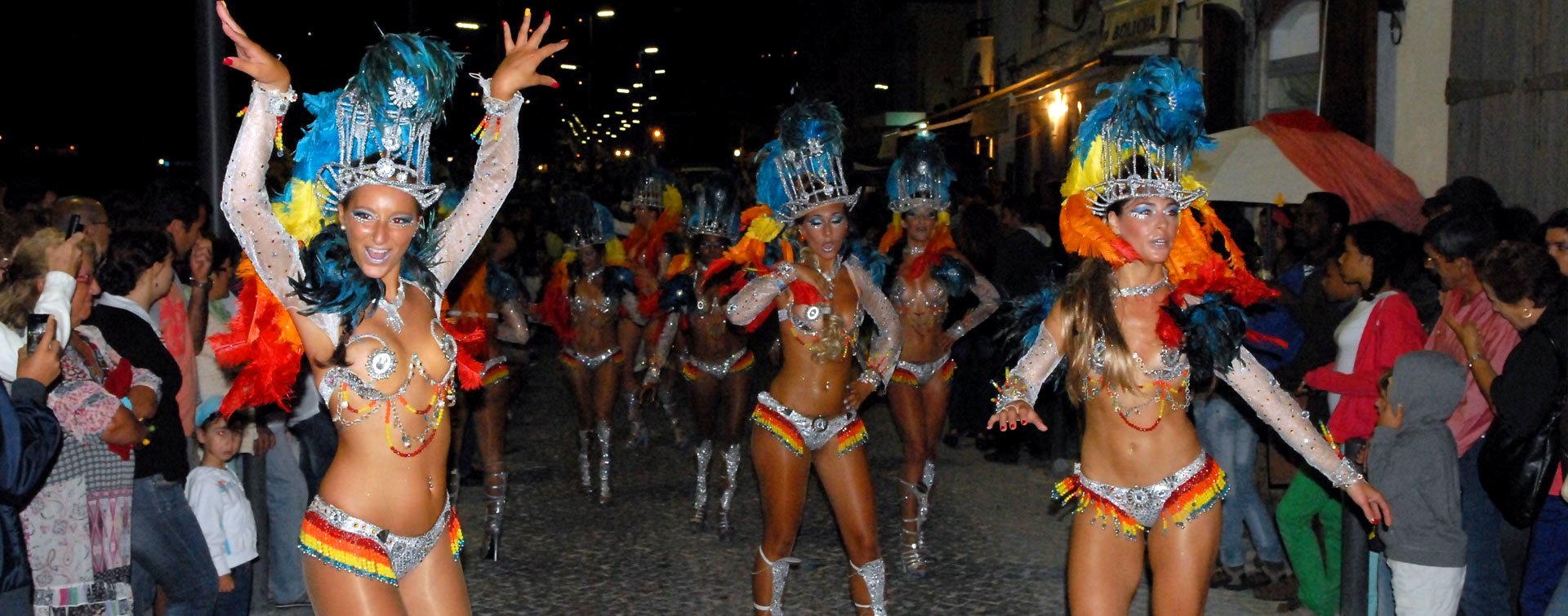 Nos meses de verão, as escolas de samba e grupos de axé saem à rua para animar as noites da vila de Sesimbra.