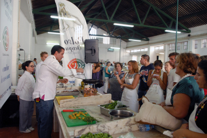Polvo confitado sobre alhada de batata doce e agrião e Salada de polvo com fava, tomate e cebola roxa foram algumas das receitas elaboradas pelo chef José Serrano e por alunas da Escola de Hotelaria e Turismo de Lisboa nas aulas de culinária realizadas nos dias 13 e 14 de setembro, nos Mercados Municipais de Sesimbra e da Quinta do Conde.
