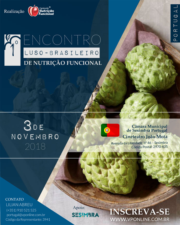 O 1.º Encontro Luso-Brasileiro de Nutrição Funcional é organizado pela VP, Centro de Nutrição Funcional, com apoio da Câmara Municipal de Sesimbra.
