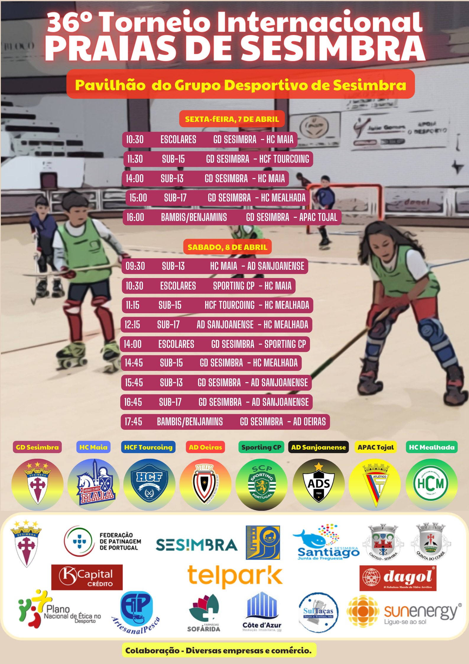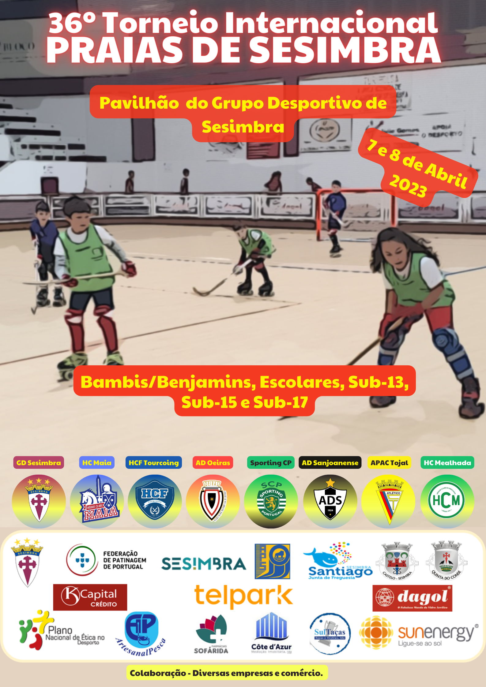 O Pavilhão Gimnodesportivo de Sesimbra recebe, nos dias 7 e 8 de abril, a 36ª edição do Torneio Internacional de Hóquei em Patins Juvenil Praias de Sesimbra 2023.