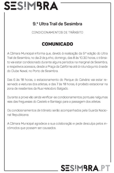 Trânsito condicionado - Ultra Trail de Sesimbra