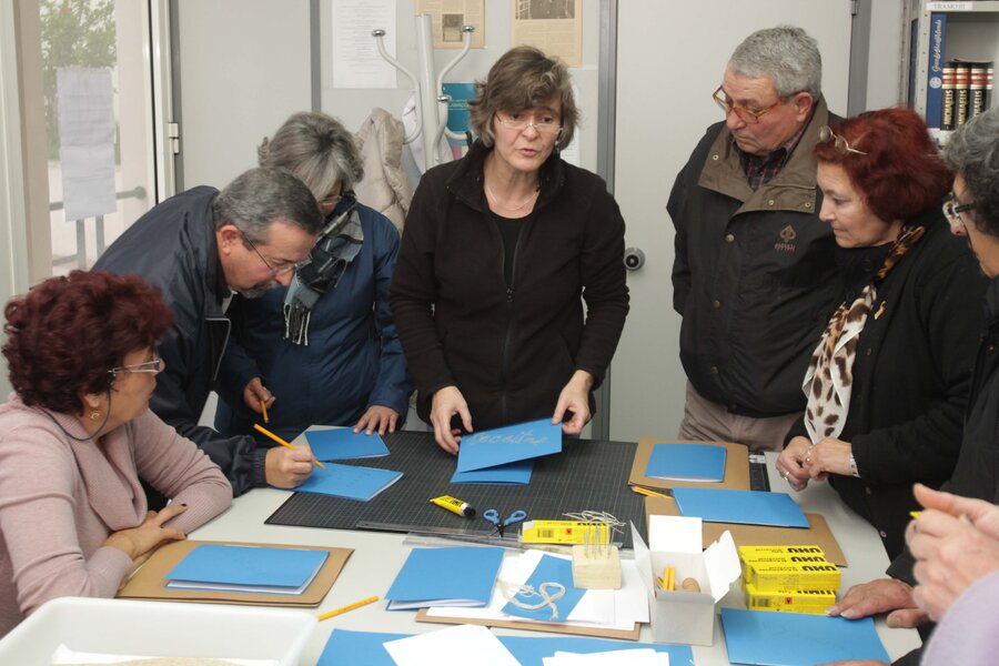 Para além de terem ficado a conhecer as instalações, os serviços disponibilizados, o ciclo dos documentos e os fundos documentais históricos, os alunos participaram num ateliê de conservação e restauro sobre encadernação no qual elaboraram um pequeno panfleto cuja capa foi decorada com a técnica de cola e areia.